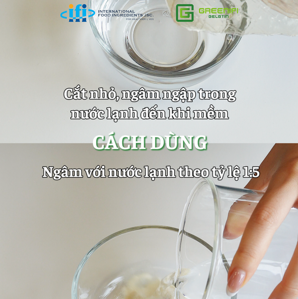 Đối với bột gelatin, quy tắc cũng tương tự nhưng đơn giản hơn một chút. Bạn chỉ cần hòa tan 6g bột gelatin với 250ml chất lỏng. Đặc biệt, bột này cần được ngâm trong nước lạnh trước khi sử dụng để “làm nở.” Điều này rất quan trọng để đạt được kết cấu hoàn hảo cho món ăn.