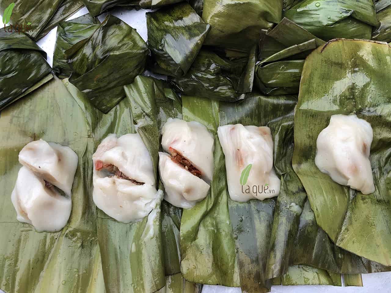 Để làm món bánh này, đầu bếp thường bắt đầu bằng cách phi thơm hành tím và tỏi, sau đó trộn đều với nhân là thịt và tôm băm nhỏ. Phần vỏ được làm từ bột nếp ngon, tạo nên độ dẻo mịn lý tưởng. Sau khi nặn bánh, chúng được gói trong lá chuối xanh mướt và đem hấp cho đến khi chín tới, tạo ra hương thơm quyến rũ.