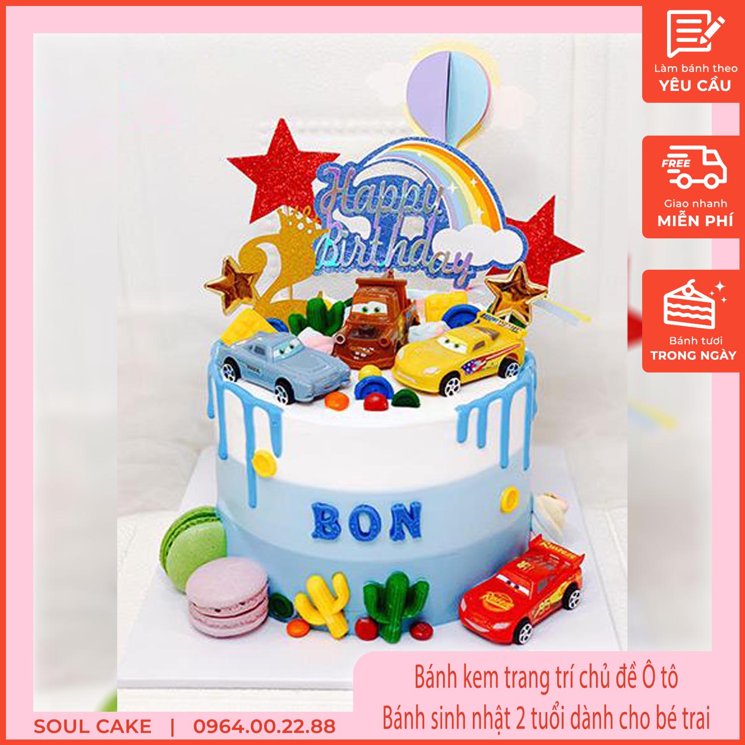 Sinh nhật là dịp đặc biệt quan trọng với mỗi em bé, nhất là khi đánh dấu cột mốc bé tròn 2 tuổi – thời điểm con yêu bắt đầu nhận thức rõ hơn về thế giới xung quanh. Để ngày vui này thêm ý nghĩa, chiếc bánh sinh nhật xinh xắn, dễ thương sẽ giúp bữa tiệc của bé trai 2 tuổi trở nên rực rỡ và đầy ắp tiếng cười. Với nhiều mẫu bánh kem sáng tạo, đa dạng chủ đề từ siêu nhân, xe hơi, con vật ngộ nghĩnh đến những ý tưởng trang trí độc đáo, bố mẹ chắc chắn sẽ tìm được chiếc bánh sinh nhật hoàn hảo dành tặng cho bé trai tròn 2 tuổi của mình.