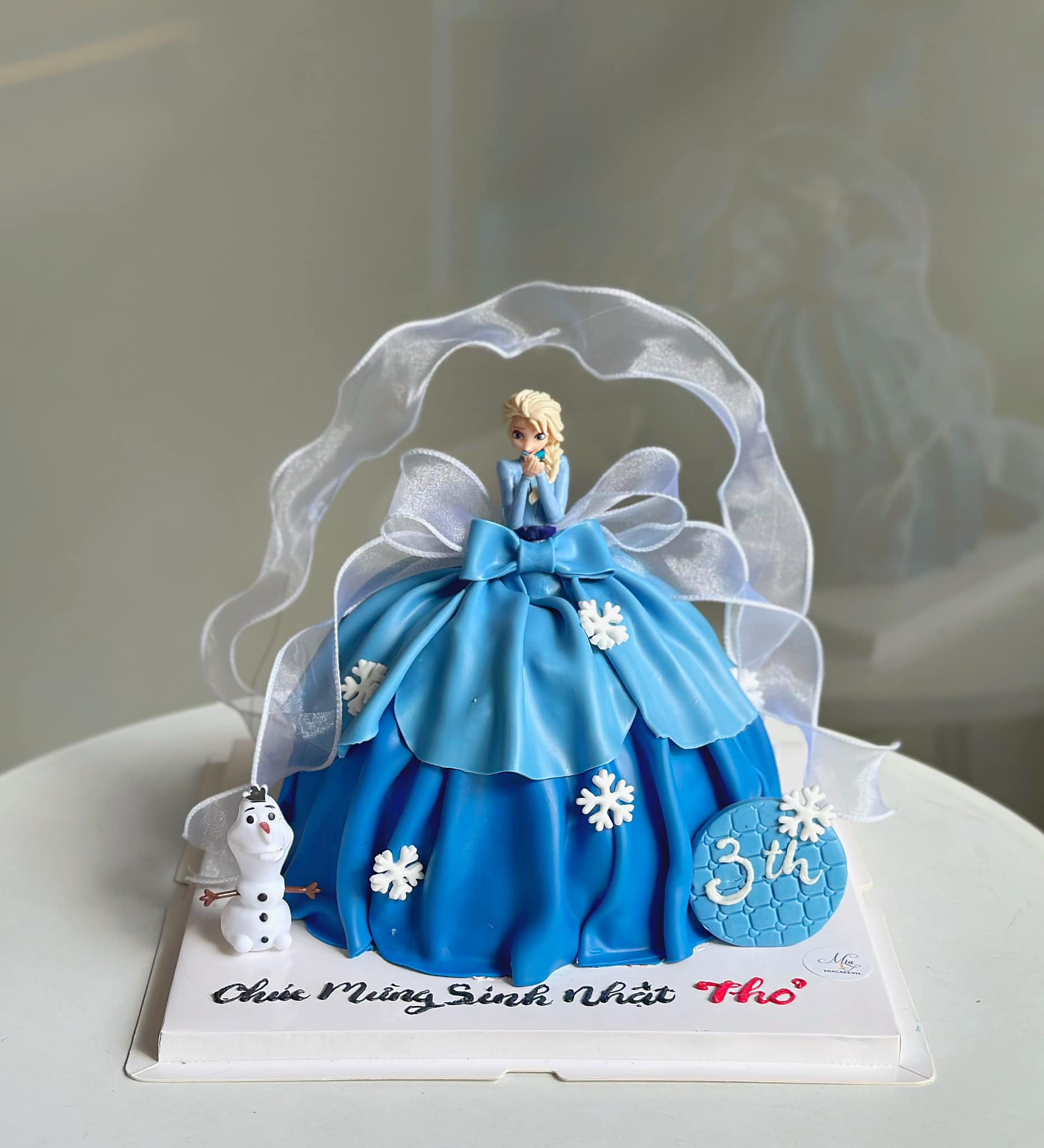 Hơn nữa, bánh còn thường được trang trí thêm bằng hoa tươi, mứt, trái cây và các phụ kiện dễ thương, khiến cho bánh trở nên thật sự hoàn hảo. Điều đặc biệt là bánh được làm thủ công tỉ mỉ, tạo hình váy Elsa lấp lánh, mang lại cảm giác như bé đang bước vào một buổi tiệc trong thế giới phép thuật.