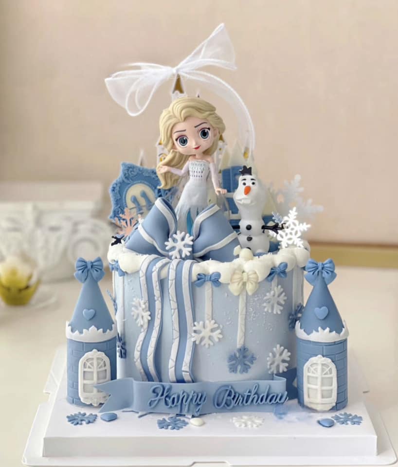 Bánh sinh nhật công chúa Elsa chính là món quà tuyệt vời cho những bé gái yêu thích nàng công chúa băng giá thần thoại. Với thiết kế tinh tế, bánh thường được trang trí với những gam màu tươi sáng như trắng và xanh da trời, mang đến cảm giác giống như lạc vào xứ sở của Elsa.
