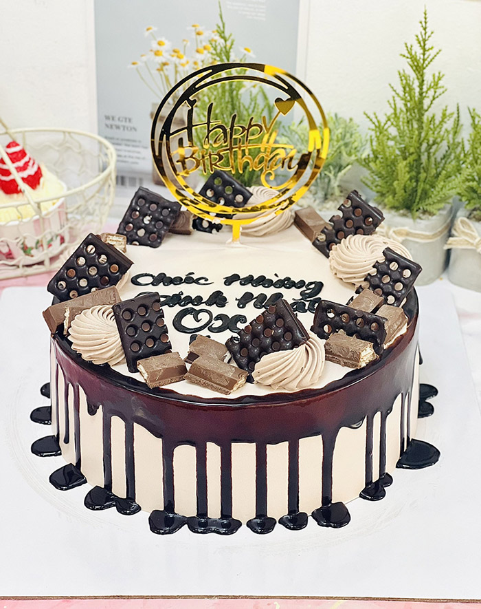 Chiếc bánh sinh nhật socola cho bé gái thường mang đến không chỉ sự hấp dẫn từ vị đắng ngọt đặc trưng, mà còn là một tác phẩm nghệ thuật thật sự. Những chiếc bánh kem hình vuông được trang trí tinh tế với socola đen và socola trắng, kết hợp cùng lớp bánh mềm mại bên ngoài, tạo nên một vẻ đẹp đầy mê hoặc.