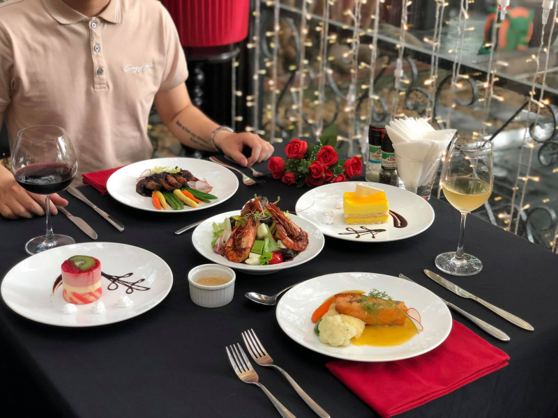 Tiếp theo, món chính có thể là bò bít tết sốt tiêu đen, cá hồi áp chảo hay gà nướng sốt rượu vang đỏ, những món ăn này không chỉ ngon miệng mà còn đầy tinh tế. Bạn có thể thêm vào một chiếc bánh chocolate lava làm món tráng miệng, để kết thúc bữa tối một cách ngọt ngào.