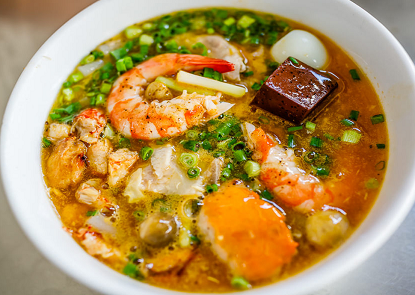 Bánh canh cua là một món ăn quen thuộc và hấp dẫn trong ẩm thực Việt Nam, đặc biệt là vào những ngày cuối tuần. Khi thưởng thức, bạn sẽ múc từng sợi bánh canh trắng mềm cùng nước lèo sền sệt, hòa quyện với thịt cua vàng óng, huyết, nấm rơm, trứng cút và tôm. Đừng quên thêm hành ngò lên trên để tăng thêm hương vị nhé!