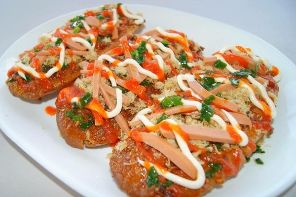 Khi bánh đã chín vàng rụm, hãy cắt thành từng miếng vừa ăn. Đừng quên rằng bạn có thể tùy biến thêm như mỡ hành, chà bông hay xúc xích để làm cho món bánh thêm phần phong phú. Hãy phết đều phần sốt muối ớt lên cả hai mặt bánh và thưởng thức khi còn nóng để cảm nhận hết hương vị thơm ngon nhé!