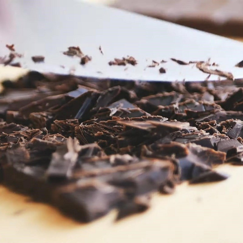 Tiếp theo, bạn chuẩn bị socola. Cắt bơ thành khối nhỏ rồi để ở nhiệt độ phòng cho mềm. Sau đó, nghiền nát bánh quy và cắt nhỏ socola sữa. Đun chảy socola bằng cách hấp cách thủy hoặc cho vào lò vi sóng, khuấy đều cho đến khi socola mịn.