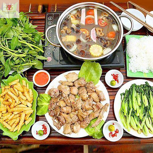 Lẩu dê không chỉ là món ăn hấp dẫn mà còn mang lại trải nghiệm ẩm thực thú vị. Khi thưởng thức lẩu dê, bạn không thể thiếu các loại rau như rau cải xanh, rau muống, rau tía tô và rau cần nước. Những loại rau này không chỉ cung cấp nhiều vitamin mà còn làm tăng thêm hương vị cho món lẩu trở nên ngon miệng hơn.