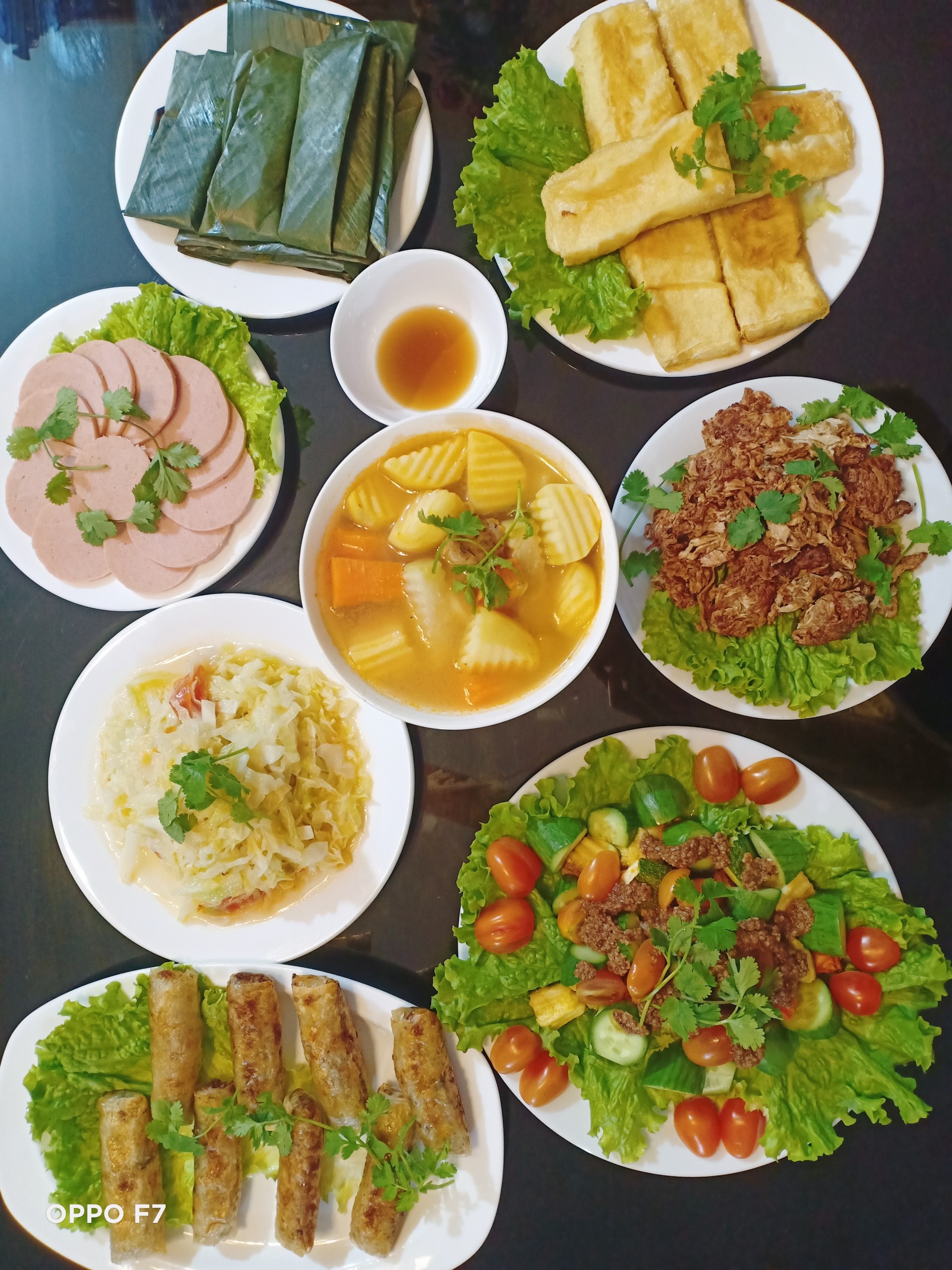 Đặc biệt, mâm cỗ chay của gia đình tôi thường có sự tham gia nhiệt tình của cô con gái nhỏ. Cùng nhau chuẩn bị canh hầm thập cẩm, bắp cải cuốn chay và đậu hũ sốt tương, chúng tôi không chỉ tạo ra những món ăn ngon mà còn kết nối tình cảm gia đình. Sự hài hòa giữa các loại thực phẩm giúp mâm cơm không chỉ đẹp mắt mà còn giàu dinh dưỡng.