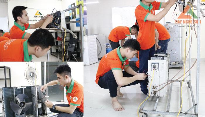 Chương trình đào tạo tại đây rất phong phú, từ kiến thức cơ bản về hệ điện đến kỹ năng lắp ráp, bảo trì và sửa chữa các thiết bị điện lạnh. Học viên được trải nghiệm thực tế thông qua các buổi thực hành với thiết bị thật, giúp củng cố kiến thức lý thuyết.