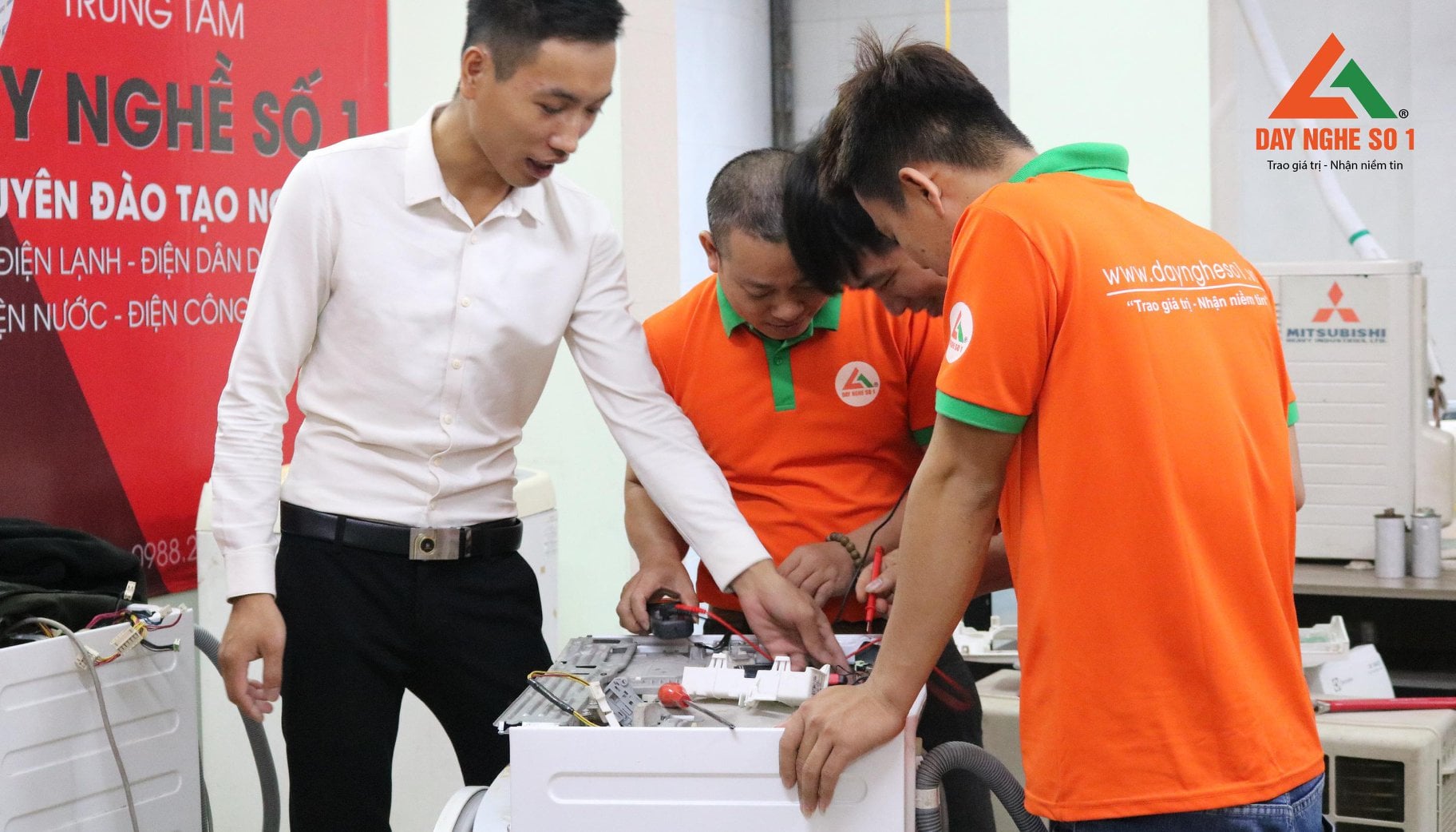 Các học viên sẽ được trải nghiệm từ những kiến thức điện tử cơ bản đến các kỹ năng sửa chữa máy giặt mono và inverter, với mức học phí hợp lý. Đặc biệt, khóa học đạt chuẩn cấp bằng chính quy, phù hợp với những ai đã tốt nghiệp trung học cơ sở. Thời gian học linh hoạt vào các ngày trong tuần, giúp học viên dễ dàng sắp xếp lịch học.