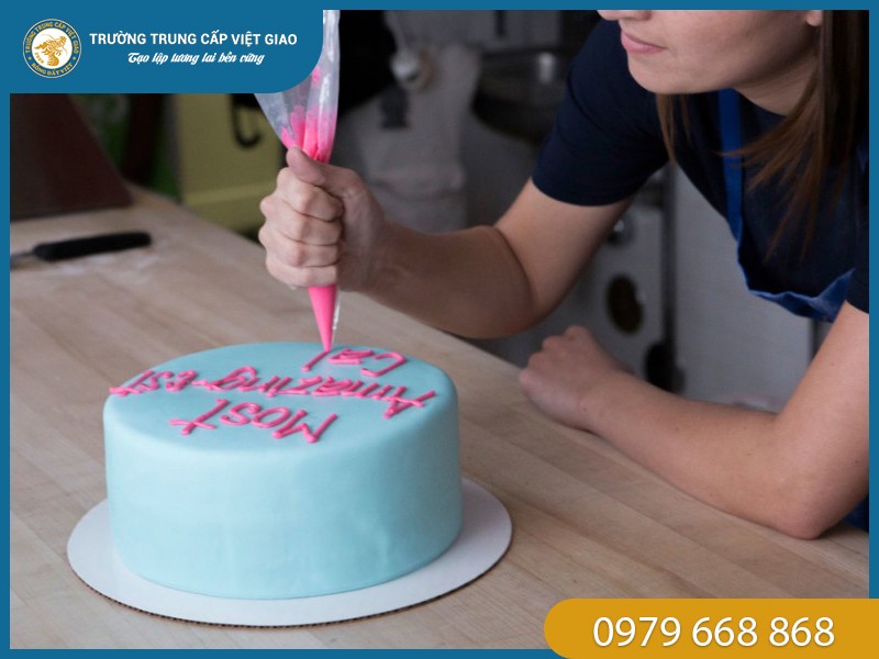 Ngoài ra, chương trình còn bao gồm những tiết học về kỹ thuật viết chữ cơ bản, giúp học viên tự tin hơn khi trang trí bánh. Sau khi hoàn thành khóa học, bạn có thể dễ dàng tìm được việc làm tại các nhà hàng hoặc thậm chí mở tiệm bánh kem riêng của mình.