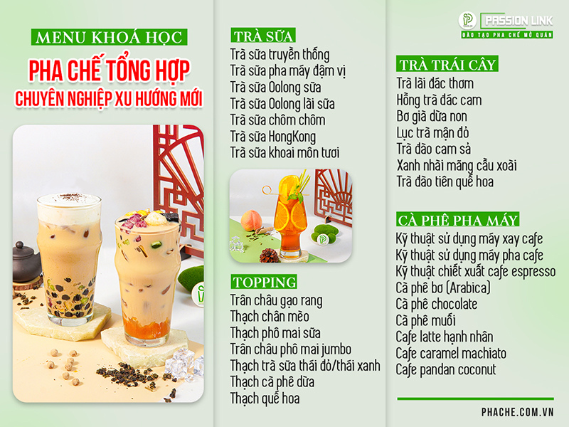 Ngoài việc học các công thức truyền thống, bạn còn được hướng dẫn pha chế những món hot trend hiện nay như Macchiato, Đá xay và nhiều thức uống độc đáo khác. Đây thực sự là một khóa học mang lại nhiều giá trị để bạn tự tin chinh phục nghệ thuật pha chế!