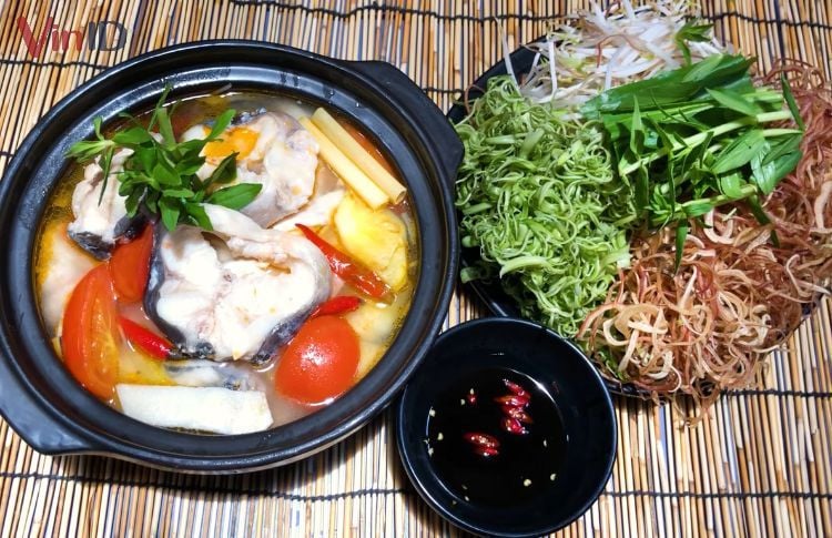 Lẩu cá lăng là món ăn đặc trưng có sự hòa quyện giữa vị ngọt của cá và vị chua cay hấp dẫn của nước lẩu. Để tăng thêm sự phong phú, lẩu cá lăng thường được ăn kèm với nhiều loại rau nhúng tươi ngon. Trong số đó, rau muống bào, bắp chuối thái sợi, rau mồng tơi hay cải ngọt đều là những lựa chọn không thể thiếu.