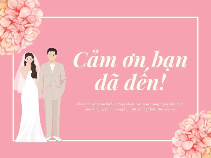 Hy vọng mọi người đã thật sự tận hưởng buổi lễ cưới của chúng tôi. Trong khoảnh khắc đáng nhớ này, vợ chồng tôi xin gửi lời cảm ơn sâu sắc đến tất cả các vị khách quý, họ hàng và bạn bè đã đến chia sẻ niềm hạnh phúc này cùng chúng tôi.