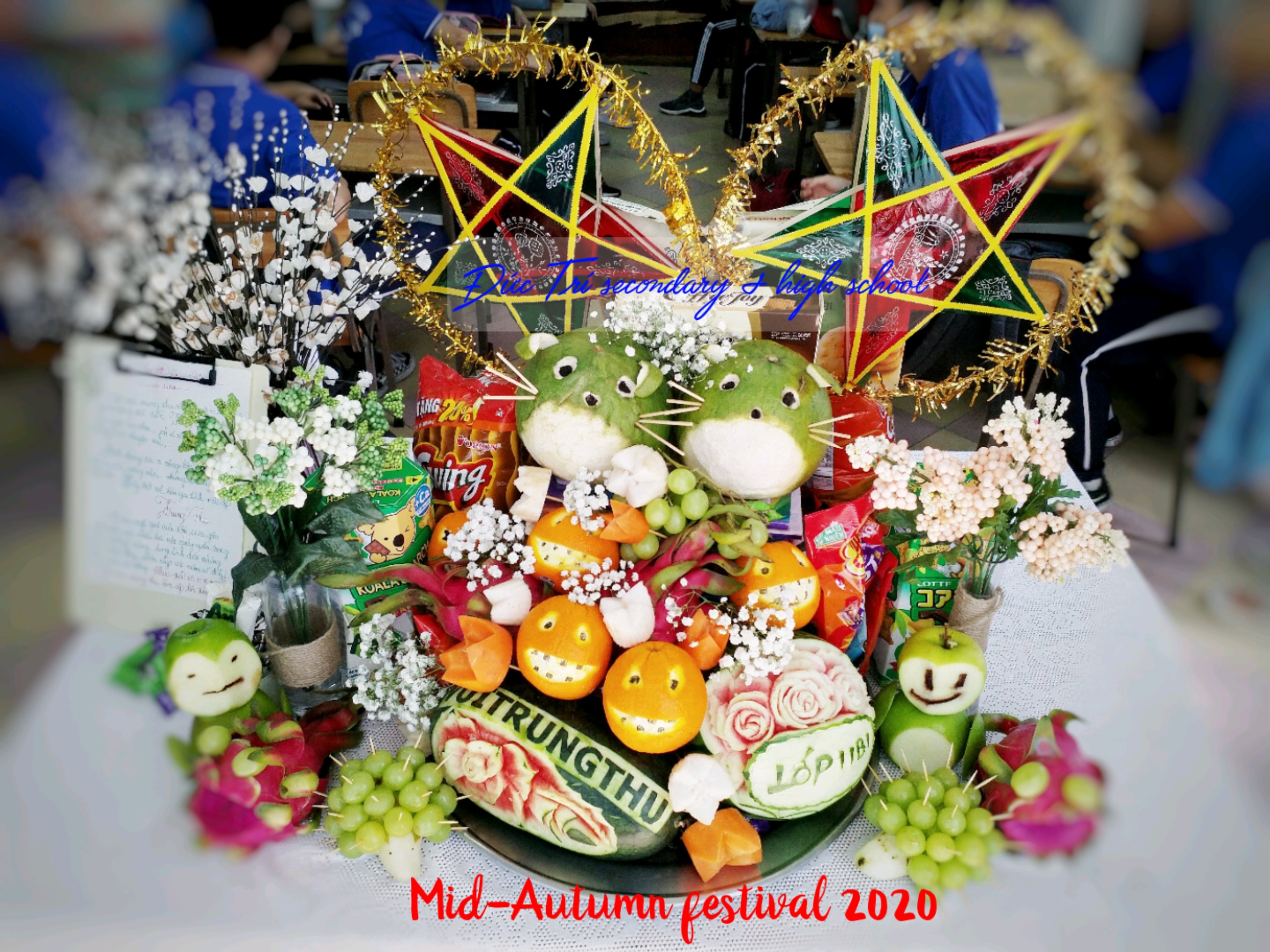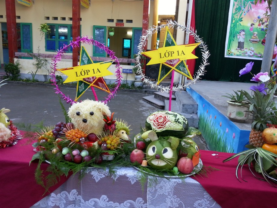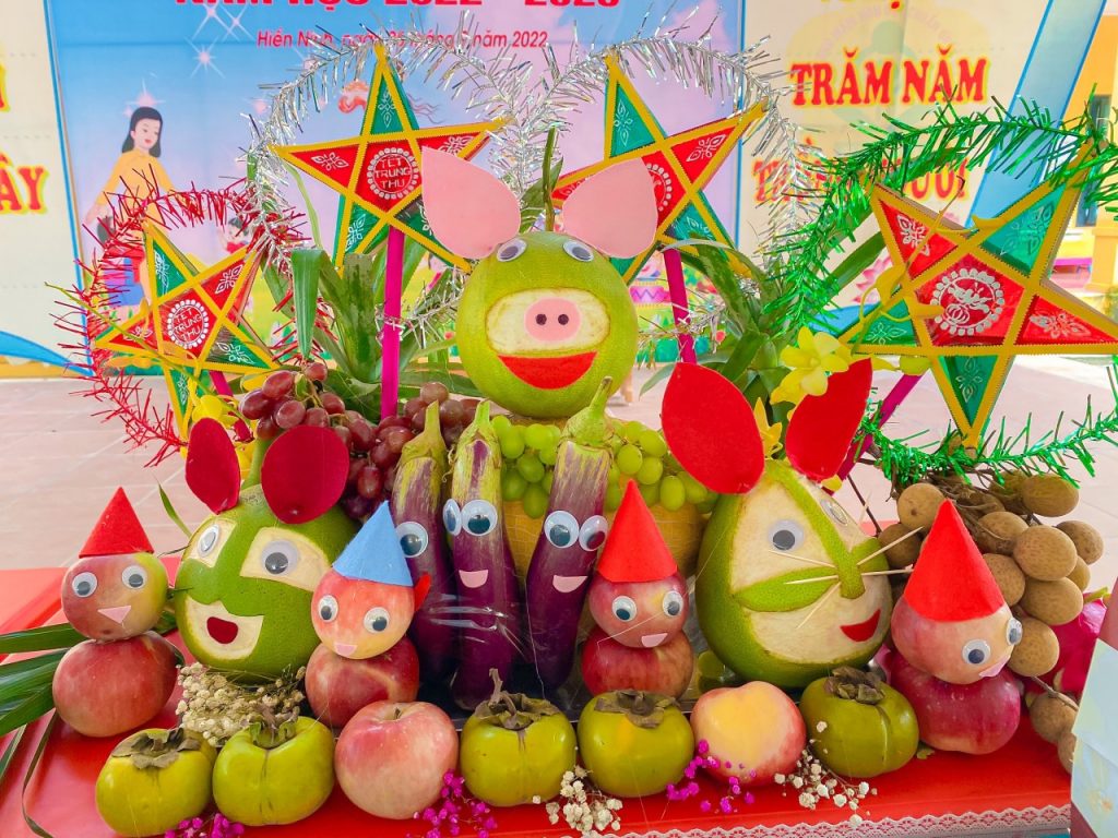Cách bố trí mâm ngũ quả cũng vô cùng quan trọng. Các loại trái cây được xếp khéo léo, với quả to ở giữa, tạo sự cân đối và hài hòa. Một cặp bánh nướng và bánh dẻo cùng với trà sen thơm ngát sẽ là những món không thể thiếu, làm cho mâm ngũ quả thêm phần hoàn hảo. Qua những hoạt động này, các em không chỉ được vui chơi mà còn gắn kết hơn với bản sắc văn hóa dân tộc mình.