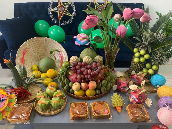 Mâm ngũ quả trong dịp Trung thu là một phần không thể thiếu trong văn hóa truyền thống của người Việt. Đúng với tên gọi, mâm ngũ quả thường bao gồm năm loại quả tượng trưng cho năm yếu tố cơ bản. Khác nhau giữa các vùng miền, nhưng những loại quả phổ biến như mãng cầu, bưởi, lựu, đu đủ, xoài hay cam, quýt được ưa chuộng. Mỗi loại quả mang một ý nghĩa tốt đẹp, ước mong mùa màng bội thu và gia đình đoàn viên hạnh phúc.