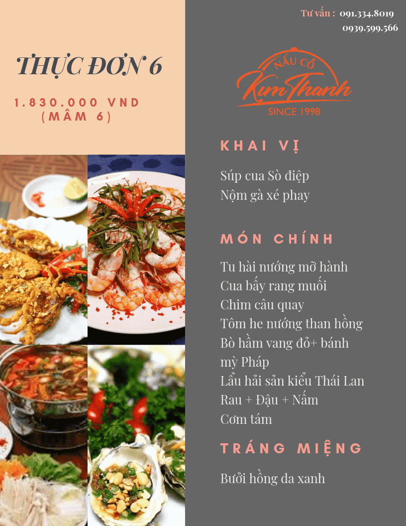 Tiếp theo, món chính có thể là mực ống nhồi thịt hoặc gà rôti, với thịt gà được nấu mềm ngon, thấm đẫm nước sốt ngọt mặn. Lẩu thái hải sản là lựa chọn lý tưởng cho những ai yêu thích sự phong phú của hải sản tươi ngon, mang đến hương vị đậm đà và ấm áp cho bữa tiệc.