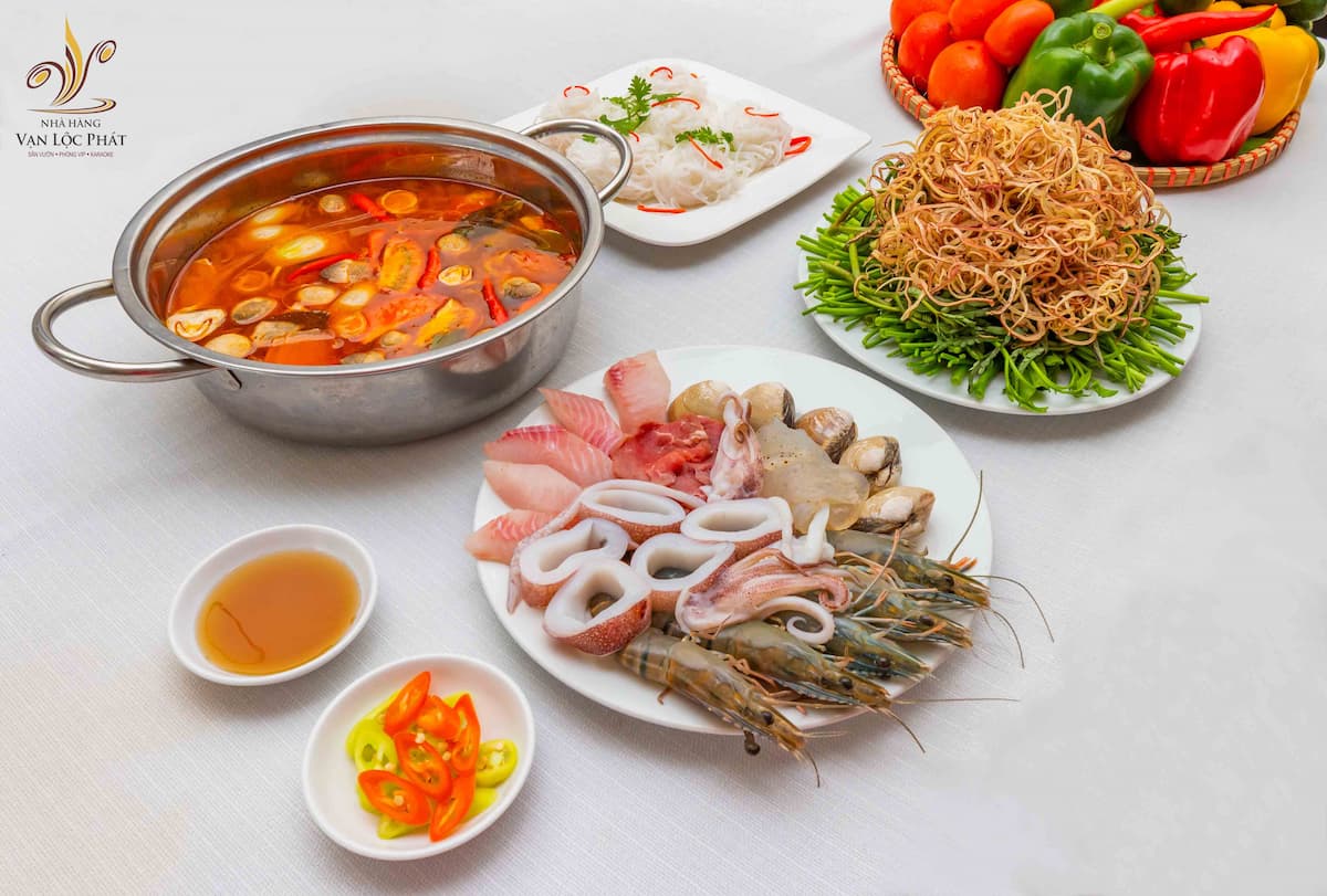 Không thể không nhắc đến món súp gà nóng hổi, thơm ngon, rất thích hợp để khởi động cho buổi tiệc. Món lẩu cá lăng nấu chua hay hải sản sẽ giúp ấm áp không khí và tạo sự hào hứng. Để hoàn thiện thực đơn, đĩa cơm chiên dương châu sẽ là lựa chọn giản dị nhưng vẫn đầy hấp dẫn.