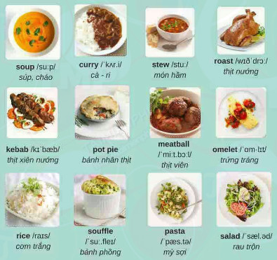 Khi đến một nhà hàng, việc nắm rõ tên các món ăn bằng tiếng Anh sẽ giúp bạn dễ dàng chọn lựa và thưởng thức. Món chính, hay còn gọi là “main course”, là phần quan trọng nhất của bữa ăn, thường được phục vụ sau món khai vị và trước món tráng miệng. Ở các nước Châu Á, bạn có thể bắt gặp các món như cơm, cơm rang, hay cháo, được xem là món chính đầy hấp dẫn.