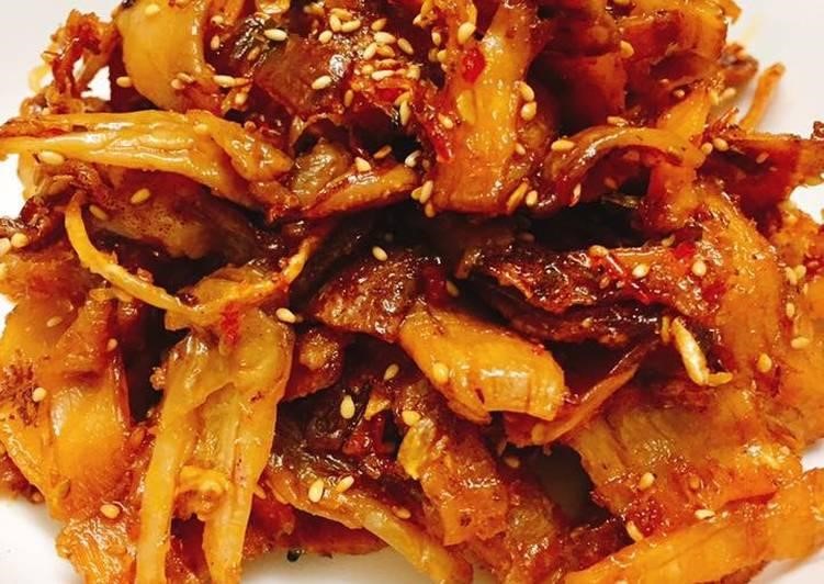 Mực khô rim mắm tỏi là một món ăn ngon miệng mà lại rất dễ làm tại nhà. Để bắt đầu, bạn cần chuẩn bị nguyên liệu như mực khô, tỏi băm và một ít ớt sừng để tăng thêm hương vị. Đầu tiên, hãy cho 2 muỗng canh dầu ăn vào chảo nóng, sau đó thêm 1 muỗng cà phê nước mắm và 2 muỗng cà phê ớt bột Hàn Quốc. Khi dầu đã nóng, cho khô mực vào xào đều trong khoảng một phút.