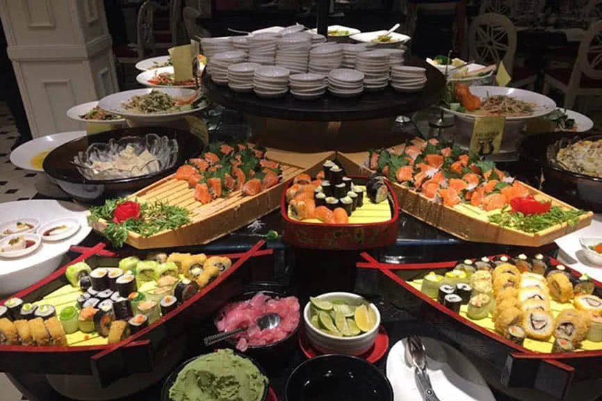 Thực đơn buffet tại Sen Nam Thanh vô cùng phong phú với hơn 150 món ăn đa dạng từ các nền ẩm thực Á, Âu. Bạn sẽ được thưởng thức những món đặc sắc như sashimi, sushi Nhật Bản, spaghetti hay lẩu gà hầm bào ngư kiểu Hong Kong, tất cả đều được chế biến từ nguyên liệu tươi ngon.