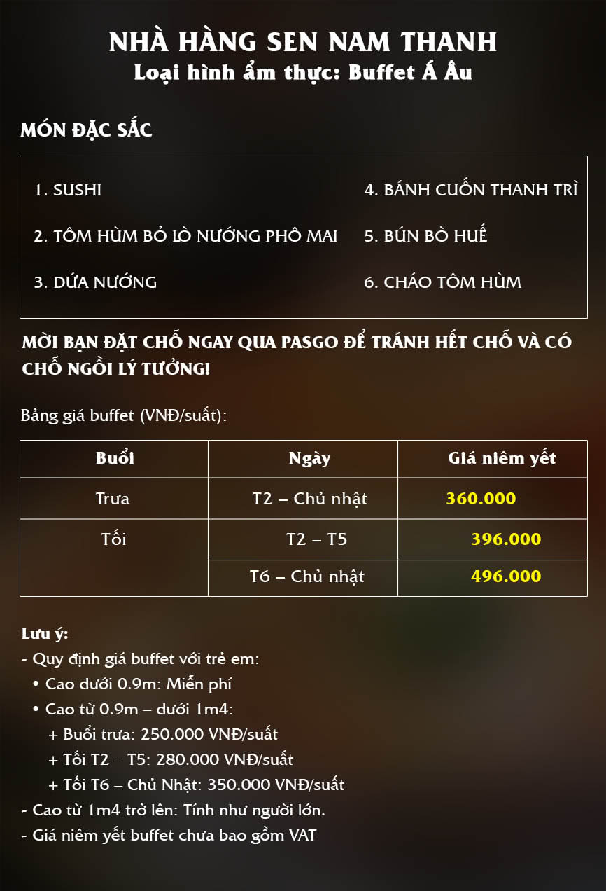 Giá Buffet Nhà Hàng Sen Nam Thanh