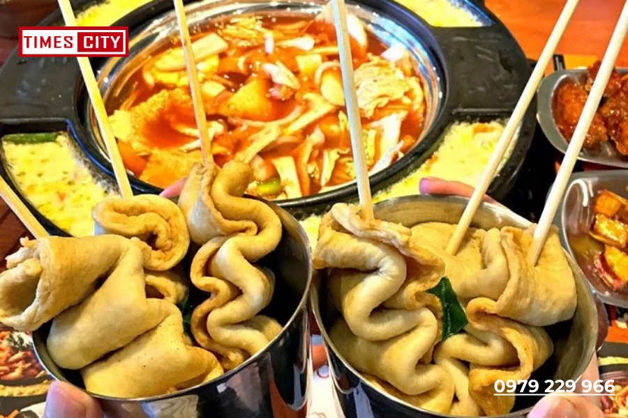 Không thể không nhắc đến Kichi Kichi, quán lẩu băng chuyền nổi tiếng tại Times City. Món lẩu đa dạng từ hải sản đến rau củ tươi ngon, cùng dịch vụ nhanh chóng, tạo nên trải nghiệm ẩm thực thú vị cho mọi người. Còn nếu bạn là tín đồ buffet, Gri & Gri sẽ khiến bạn hài lòng với các món ăn được chế biến tỉ mỉ, đầy hương vị và chất lượng.