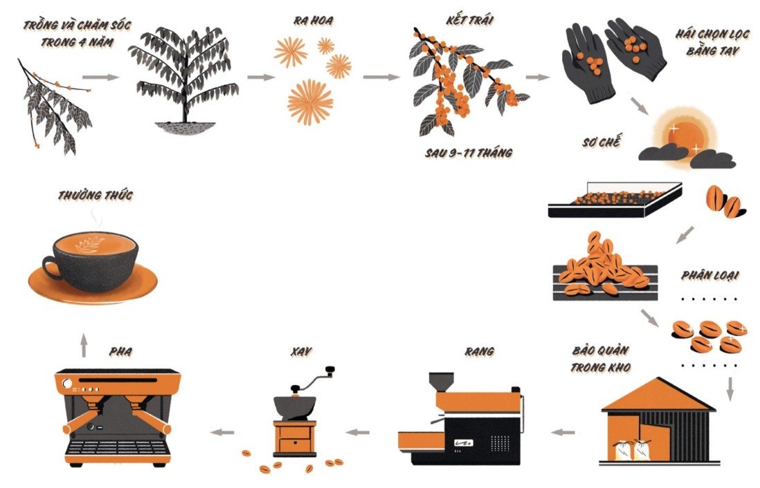 Cà phê không chỉ đơn giản là một loại thức uống, mà còn là thành quả của cả một quy trình chế biến tỉ mỉ và công phu. Đằng sau mỗi tách cà phê thơm ngon là sự kết hợp hài hòa giữa các phương pháp chế biến khác nhau, từ sơ chế ban đầu cho đến rang xay và bảo quản. Mỗi bước trong quy trình này đều đóng vai trò quan trọng, ảnh hưởng trực tiếp đến hương vị và chất lượng cuối cùng của hạt cà phê. Bài viết dưới đây sẽ cùng bạn khám phá chi tiết các bước chế biến cà phê, cũng như tác động của quy trình này đến chất lượng sản phẩm.