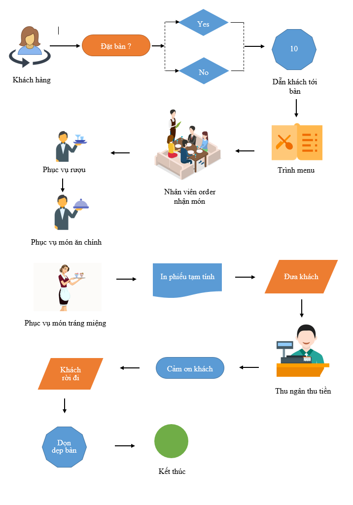 Cuối cùng, khi món ăn được phục vụ, nhân viên cần chú ý đến từng chi tiết, từ cách bày trí cho đến thái độ phục vụ, để đảm bảo rằng mọi thứ đều hoàn hảo. Mỗi bước trong quy trình này đều góp phần tạo nên một trải nghiệm ăn uống tuyệt vời cho khách hàng.