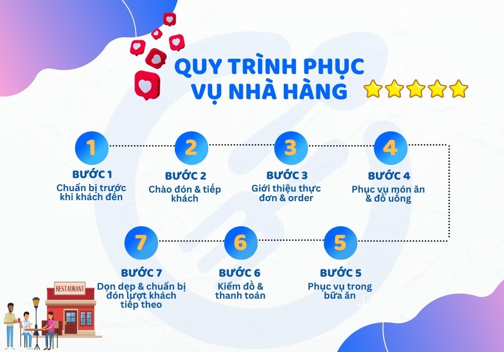 Ngành nhà hàng là lĩnh vực đòi hỏi sự chuyên nghiệp và tinh tế trong mọi khâu phục vụ khách hàng. Trong đó, quy trình phục vụ nhà hàng đóng vai trò trung tâm, quyết định chất lượng dịch vụ và trải nghiệm của thực khách. Một quy trình phục vụ chuyên nghiệp không chỉ giúp nhà hàng xây dựng hình ảnh uy tín mà còn gia tăng sự hài lòng và giữ chân khách hàng. Bài viết này sẽ giúp bạn hiểu rõ khái niệm, tầm quan trọng, các bước thực hiện quy trình phục vụ nhà hàng cùng những lưu ý, tiêu chuẩn, lỗi thường gặp và cách đào tạo, cải tiến để nâng cao chất lượng dịch vụ.