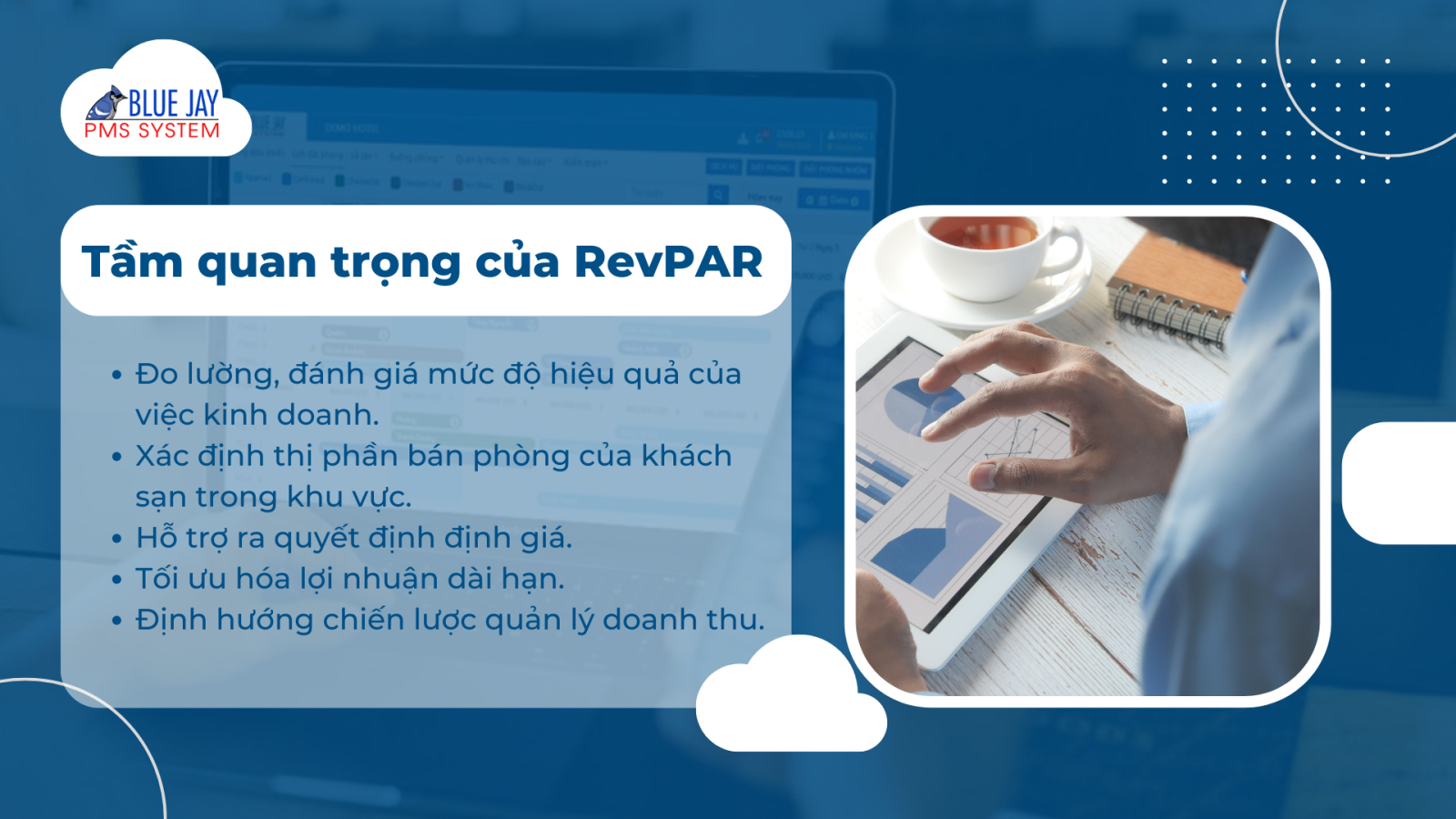 Việc theo dõi RevPAR giúp khách sạn điều chỉnh chiến lược giá cả, tối ưu hóa công suất phòng và cải thiện trải nghiệm khách hàng. Nhờ đó, RevPAR trở thành thước đo hữu ích để đạt được mục tiêu doanh thu và phát triển bền vững trong ngành du lịch.