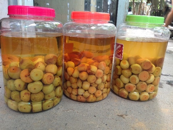 Ngâm rượu táo mèo là một trong những cách thú vị để tận dụng hương vị chua ngọt của loại quả này. Quy trình ngâm rượu khá đơn giản, trước hết bạn cần chuẩn bị nguyên liệu gồm 2 kg táo mèo tươi, 4 lít rượu trắng, 1 kg đường và 200 ml mật ong. Tỷ lệ ngâm lý tưởng là 2 phần táo mèo, 4 phần rượu và 1 phần đường.