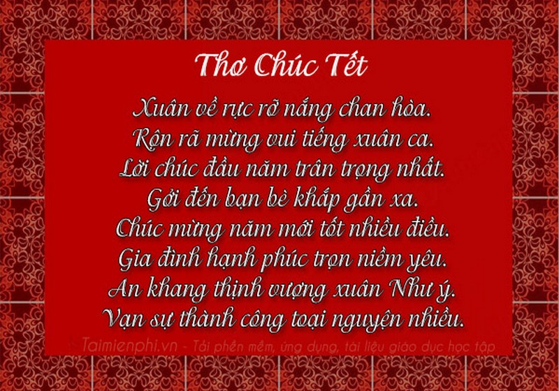 Bên cạnh đó, không thể thiếu hình ảnh bánh chưng xanh, dưa hấu đỏ, cành mai vàng… Những hình ảnh quen thuộc ấy tạo nên bức tranh Tết thật sinh động, gợi nhớ về những kỷ niệm đẹp trong mỗi gia đình. Chúc Tết qua thơ chính là một cách thể hiện tình yêu thương, gắn kết mọi người lại gần nhau hơn trong không khí vui tươi của mùa xuân.
