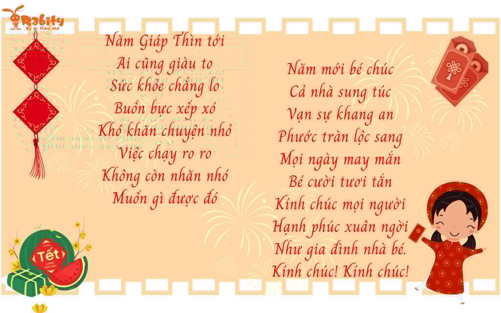 Đối với các bé, việc学习 những bài thơ chúc Tết ngắn gọn, vui nhộn sẽ giúp trẻ dễ dàng tiếp thu và ghi nhớ. Từ những câu thơ dễ thương, bé sẽ cảm nhận được không khí vui tươi của mùa xuân, đồng thời hiểu thêm về ý nghĩa của việc chia sẻ niềm vui, ước mơ trong ngày Tết.