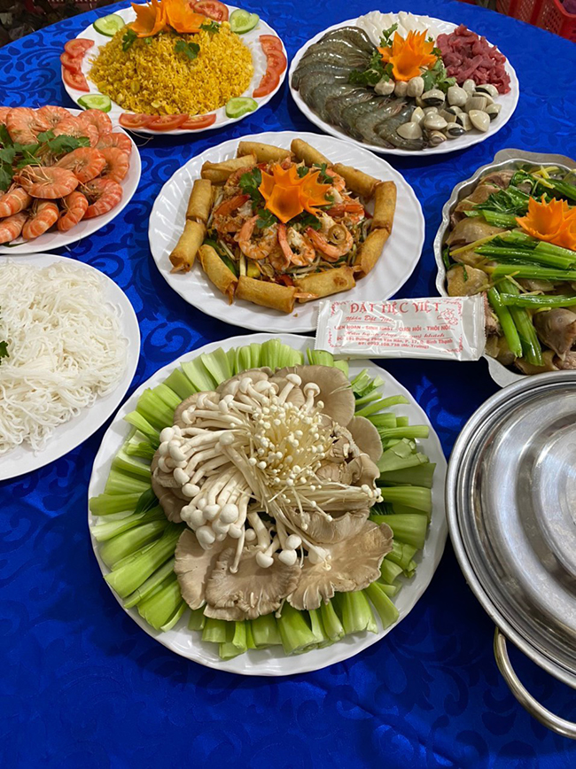 Bên cạnh đó, canh chua cá basa hay bông cải xào tôm cũng không thể thiếu trong thực đơn. Vị chua chua của canh chua cùng sự tươi ngon của tôm tươi khiến bữa cơm càng thêm phần hấp dẫn. Ngoài ra, những món như khổ qua nhồi thịt, thịt hun khói hay gỏi tai cuốn cũng được nhiều người yêu thích, tạo nên sự đa dạng cho bữa tiệc.