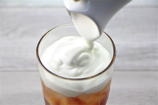 Đầu tiên, hãy đánh đều cream cheese với nước đường cho đến khi hỗn hợp trở nên mịn màng. Tiếp theo, quét kem phô mai dẻo quanh thành ly, sau đó pha trà đen hoặc trà xanh theo sở thích của bạn, thêm đá và lắc đều. Khi đổ trà vào ly, lớp kem phô mai sẽ nổi lên trên tạo nên một hình ảnh thơm ngon và hấp dẫn.
