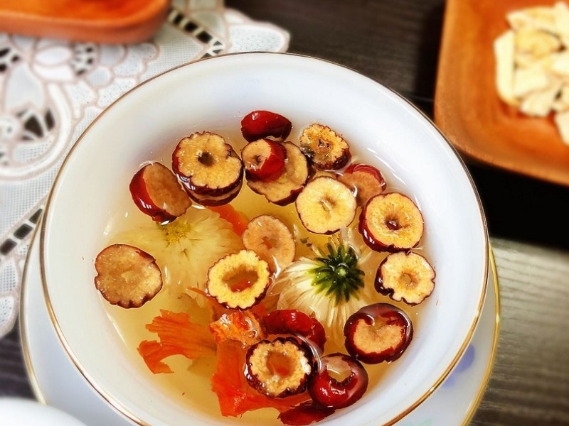 Trà táo đỏ hoa cúc không chỉ giúp thanh nhiệt, giải độc mà còn hỗ trợ giấc ngủ, làm sáng mắt và giảm mệt mỏi. Đặc biệt, với sự kết hợp của các thành phần tự nhiên, loại trà này còn có khả năng làm đẹp da, là lựa chọn lý tưởng cho những ai yêu thích chăm sóc sức khỏe và sắc đẹp.