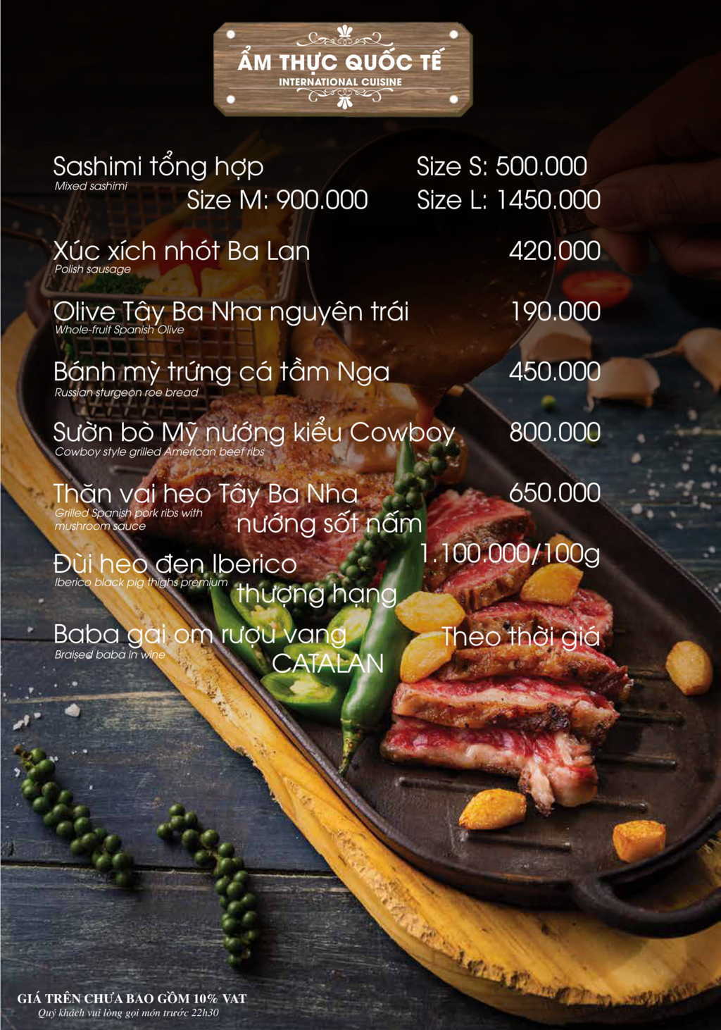 Với mức giá trung bình 400.000VNĐ/người cho mâm 6 người, thực khách sẽ được thưởng thức những món ăn hấp dẫn từ ẩm thực Âu-Á và hải sản đa dạng. Nhà hàng không chỉ nổi tiếng với những món ăn ngon mà còn sở hữu một menu bia phong phú, từ bia tươi đến bia chai nội, ngoại, thỏa mãn mọi gu thưởng thức của khách hàng.