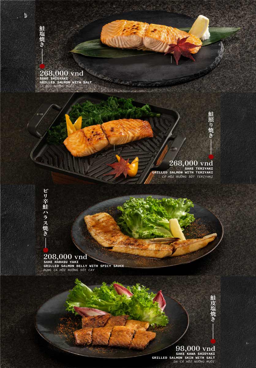 Ngoài ra, món cá hồi cắt mỏng sốt cay chỉ với 188.000 đồng sẽ khiến bạn cảm nhận được sự tươi ngon từ từng lát cá. Set Nigiri 6 loại giá 498.000 đồng cũng là một gợi ý tuyệt vời cho những ai thích thưởng thức sự tinh tế trong từng miếng sushi.
